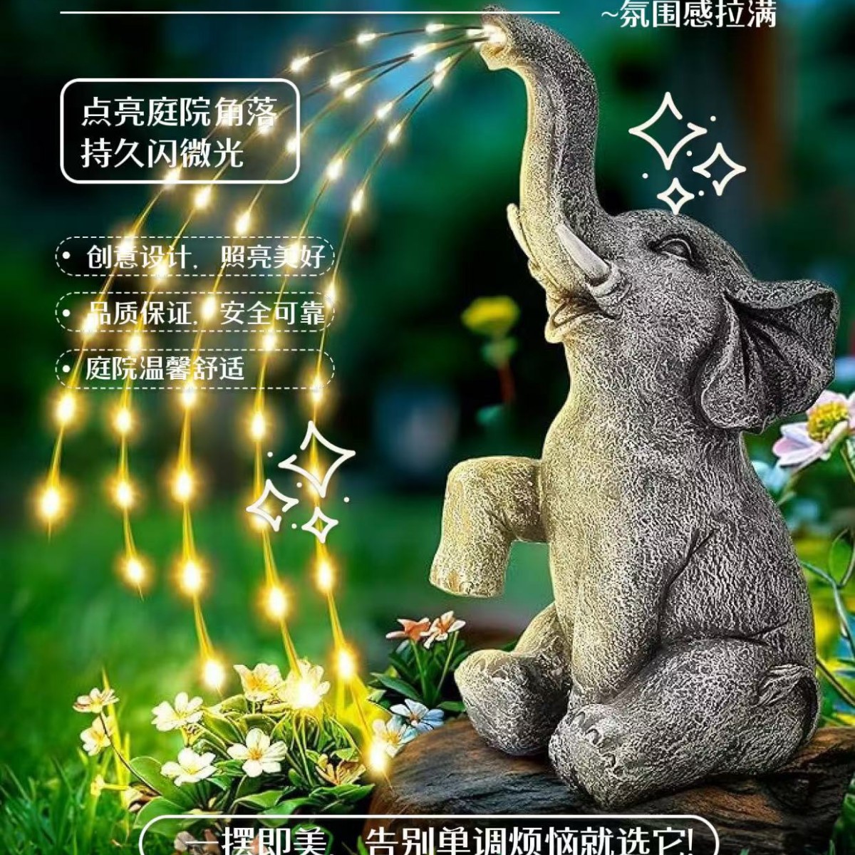 跨境 热款太阳能灯小象摆件 家居庭院装饰品 户外花园均可使用