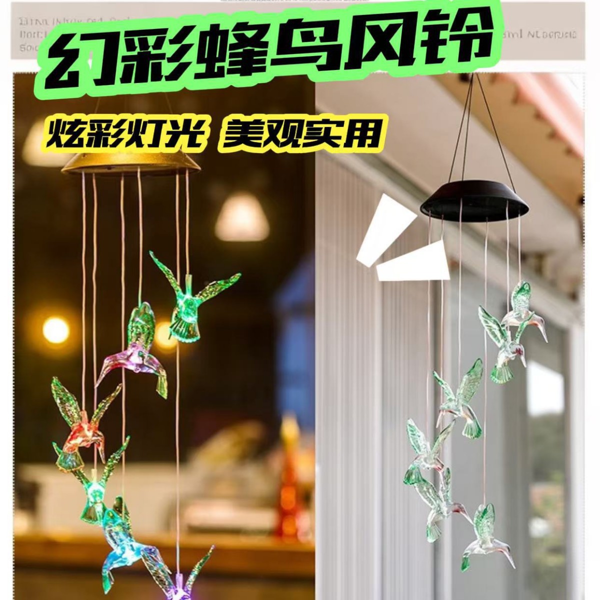 亚马逊跨境热卖新款蜂鸟﹑玫瑰球﹑灯泡太阳能灯变色风铃LED花园