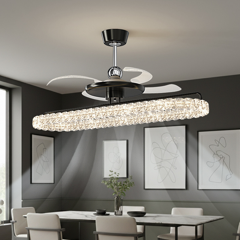 26新款风扇灯餐厅吊扇灯意式轻奢极简饭厅吧台餐桌一字LED长条灯