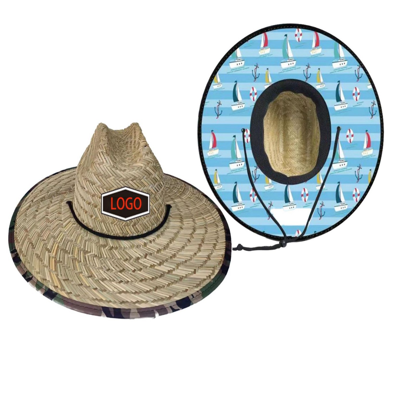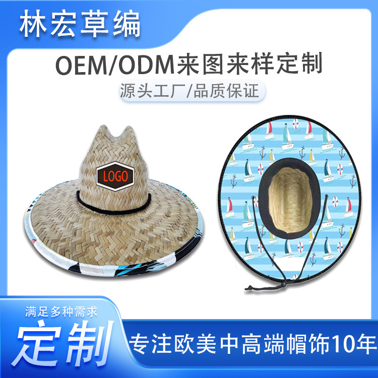 救生员帽子定制欧美男士大沿纸布印花草帽遮阳防晒大帽檐高顶