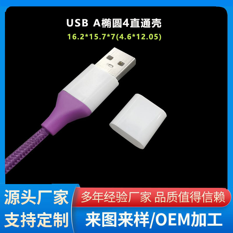 USB A公椭圆4壳 数据线外壳 USB胶壳直通款USB主体通用壳耐用便携