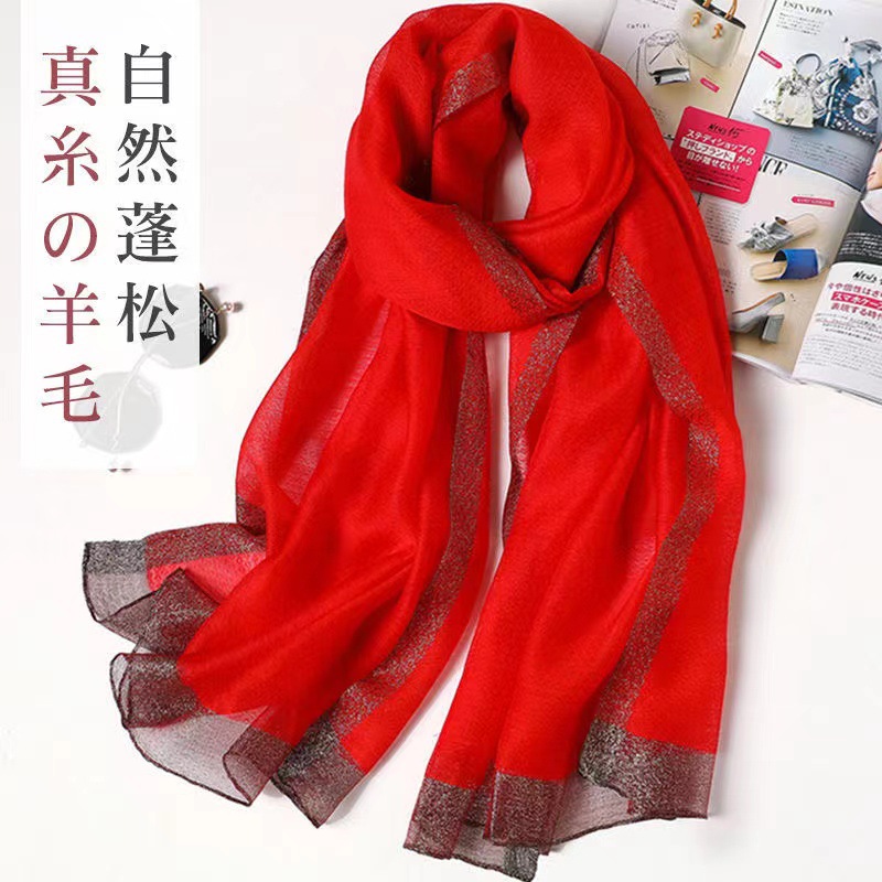 红色喜庆妈妈婚礼婚宴装真丝羊毛旗袍披肩长款围巾外披薄款披肩女