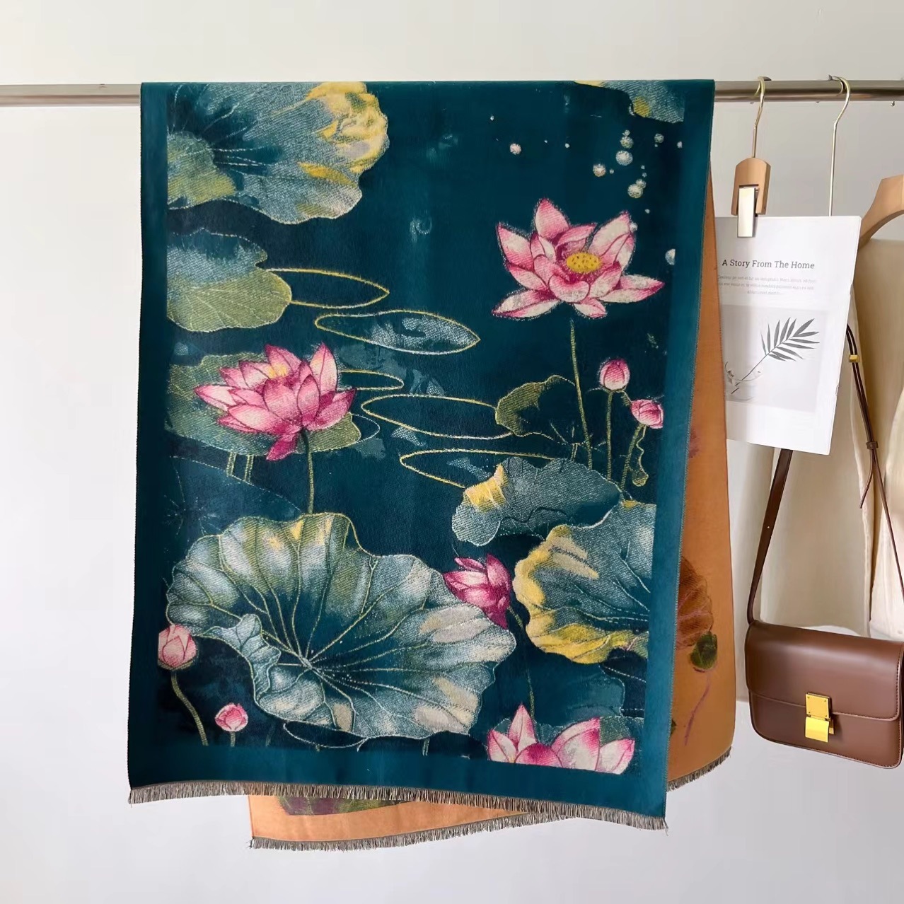 2024高贵色新款时尚荷花加厚秋冬保暖围巾气质百搭两用披肩女围脖