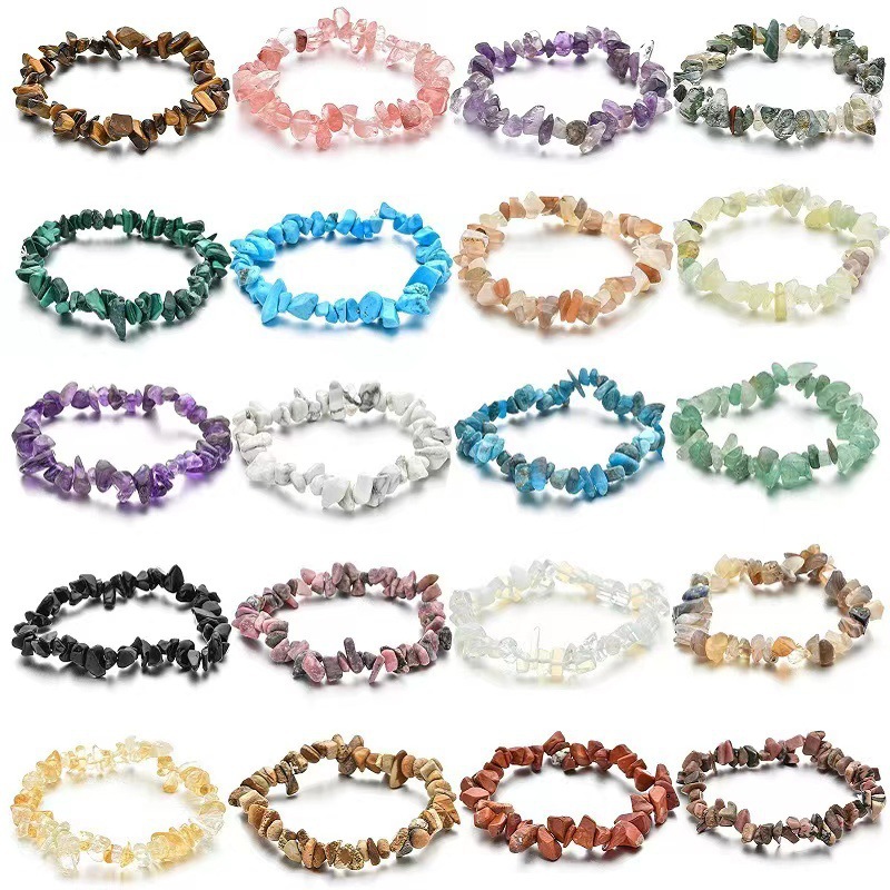 跨境亚马逊热销天然石水晶碎石手链手镯编织可拉伸不规则碎石手串