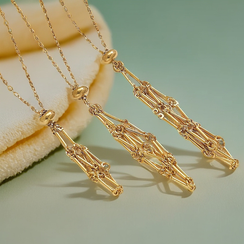 不锈钢网兜项链 高级感天然宝石水晶配饰竹节编织可调节链子吊坠