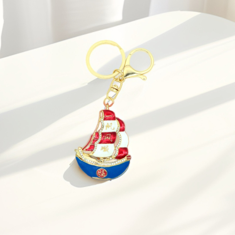 中国风一帆风顺帆船汽车钥匙扣合金镶钻金属钥匙圈汽车包包挂饰品