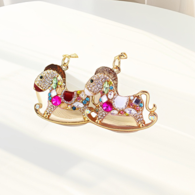 创意可爱生肖小马汽车钥匙扣合金镶钻动物钥匙圈汽车钥匙包包挂件
