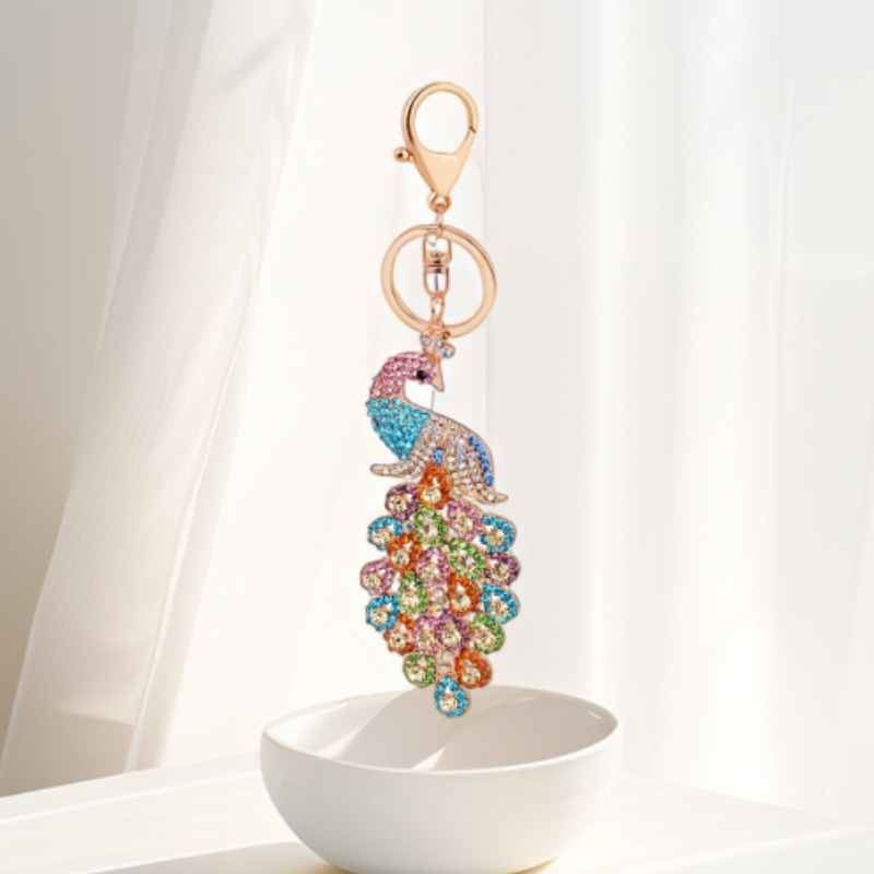 中国风复古镶钻孔雀汽车钥匙扣女合金动物吊坠钥匙圈汽车包包挂件