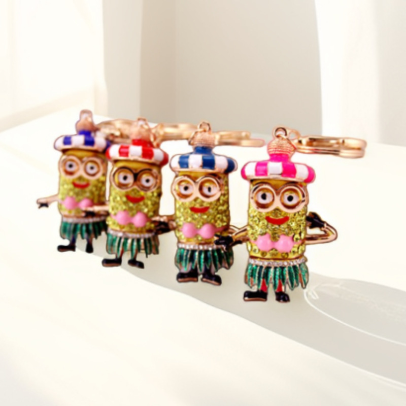 小清新可爱草裙舞黄色小人卡通钥匙扣镶钻金属钥匙圈汽车包包挂件