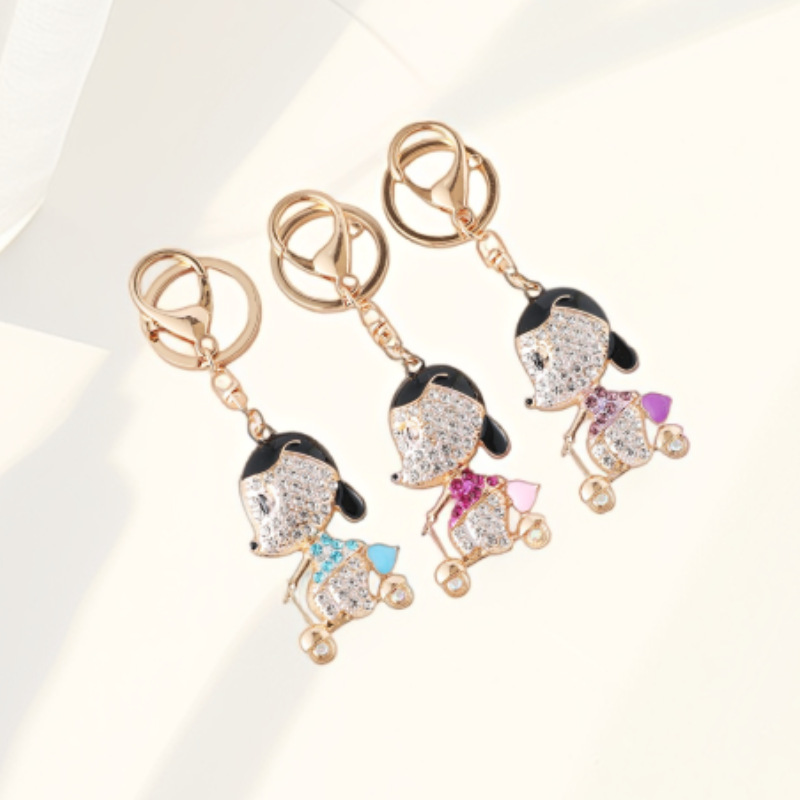 可爱镶钻滑板小狗卡通钥匙扣合金动物汽车钥匙圈汽车钥匙包包挂件