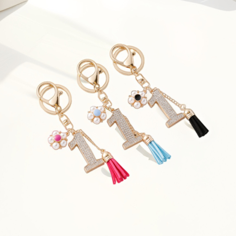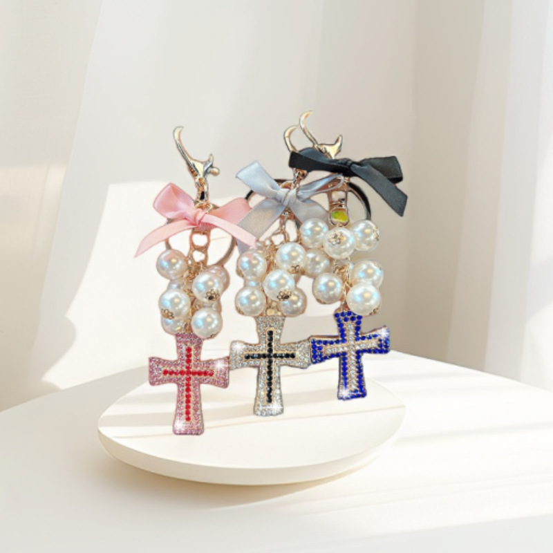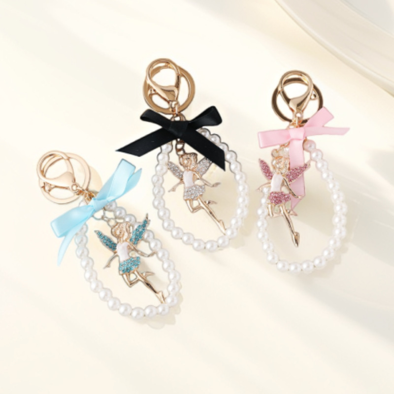 韩版小香风珍珠链汽车钥匙扣女合金镶钻包包钥匙圈汽车包包挂饰品