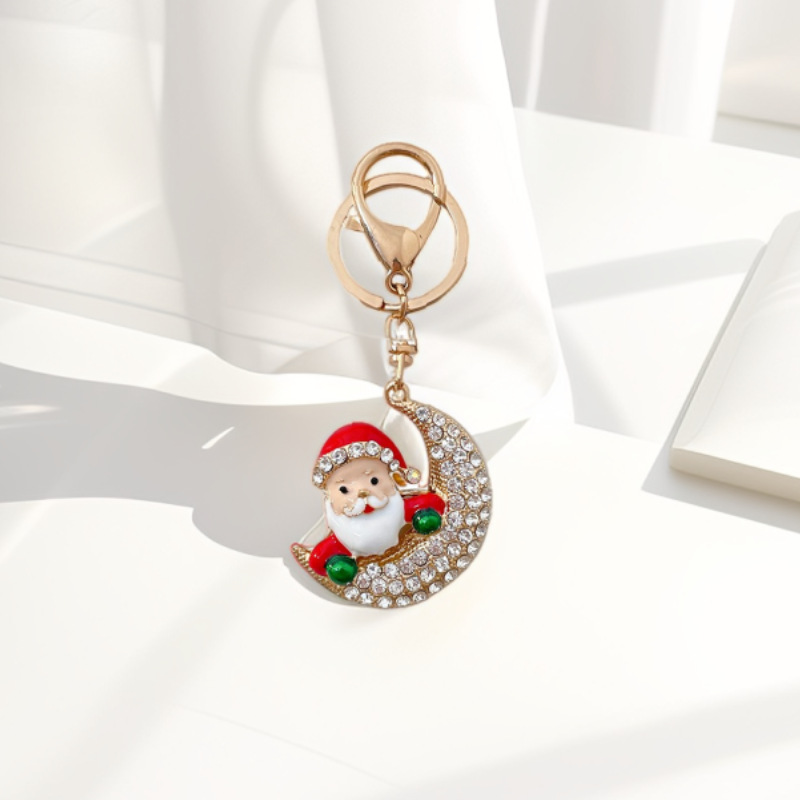 跨境可爱卡通圣诞老人圣诞钥匙扣合金镶钻金属钥匙圈汽车包包挂件