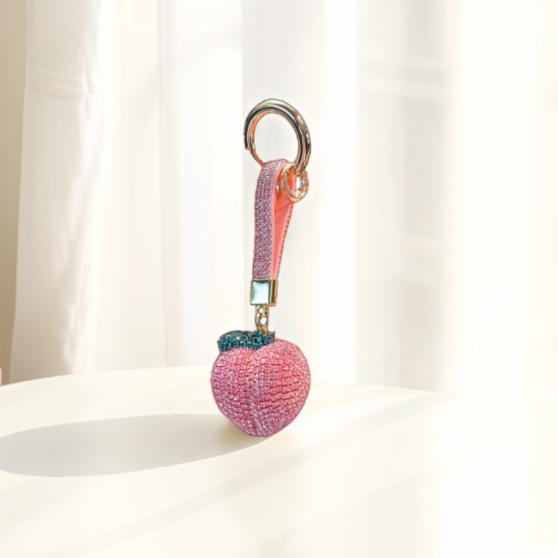 韩版时尚甜美满钻水蜜桃汽车钥匙扣女合金水果钥匙圈汽车包包挂件