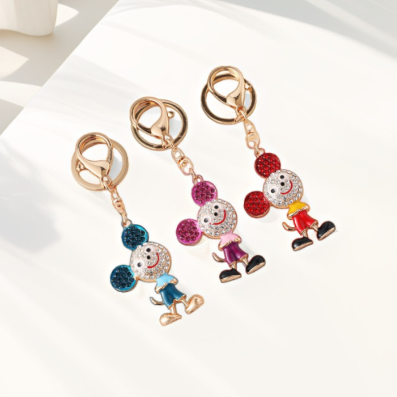 可爱晴天娃娃铃铛汽车钥匙扣女合金镶钻公仔钥匙圈汽车包包挂饰品