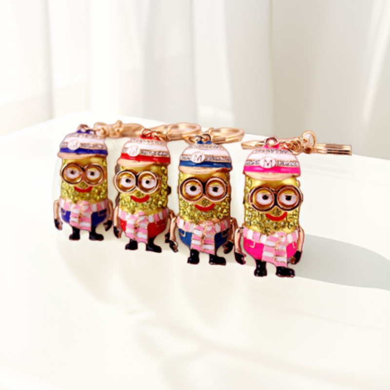 小清新可爱黄色小人卡通钥匙扣女合金镶钻金属钥匙圈汽车包包挂件