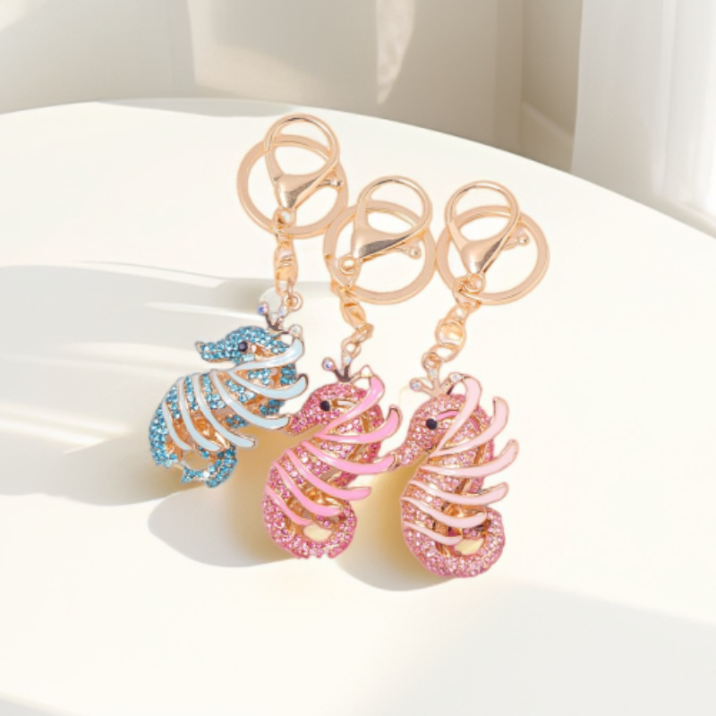 可爱镶钻海马卡通钥匙扣女合金镶钻动物汽车钥匙圈汽车包包挂饰品