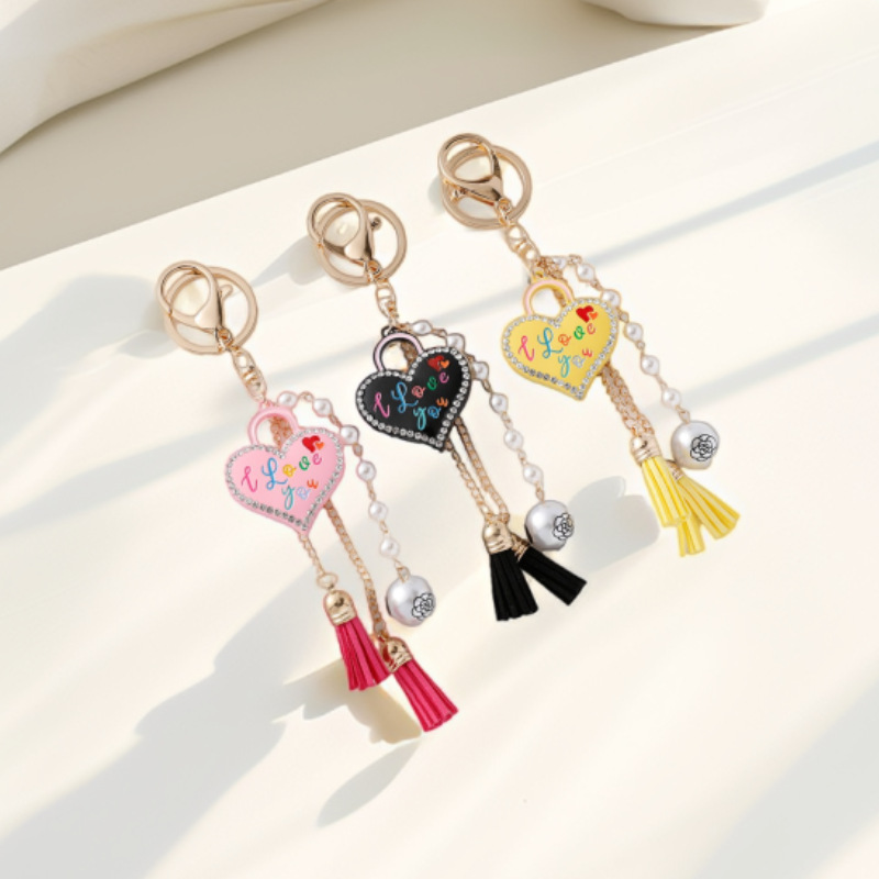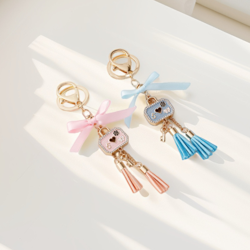 韩版时尚流苏爱心锁汽车钥匙扣镶钻桃心锁金属钥匙链汽车包包挂件
