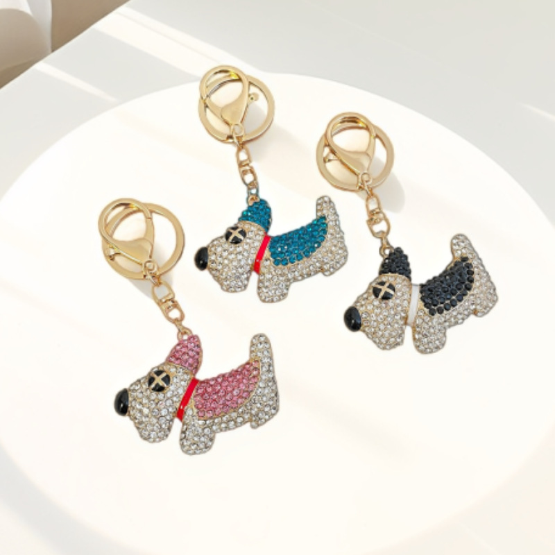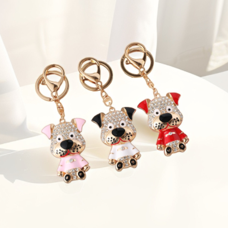 跨境创意可爱卡通狗狗金属钥匙扣合金镶钻动物钥匙圈汽车包包挂件