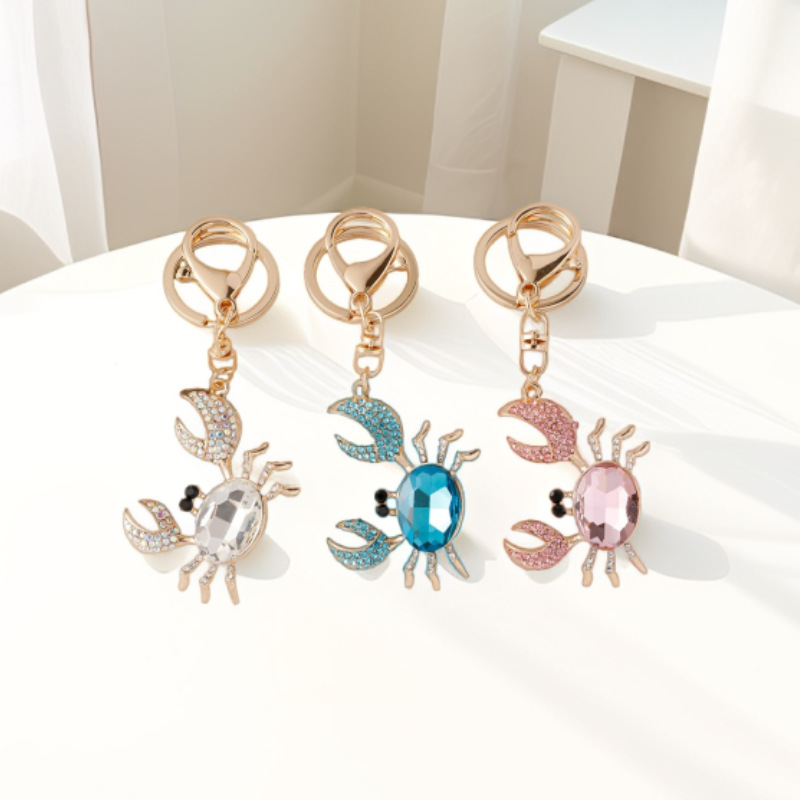 创意可爱镶钻水晶螃蟹汽车钥匙扣合金镶钻动物钥匙圈汽车包包挂件