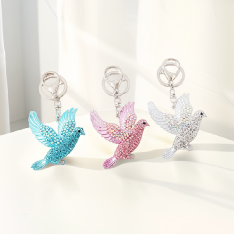 创意时尚精致镶钻小鸟汽车钥匙扣女合金动物钥匙圈汽车包包挂饰品