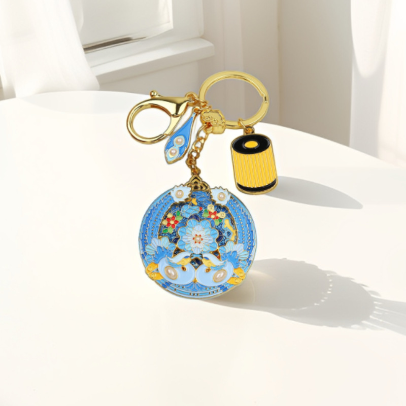 中国风珐琅荷花汽车钥匙扣女合金花卉金属钥匙圈汽车钥匙包包挂件