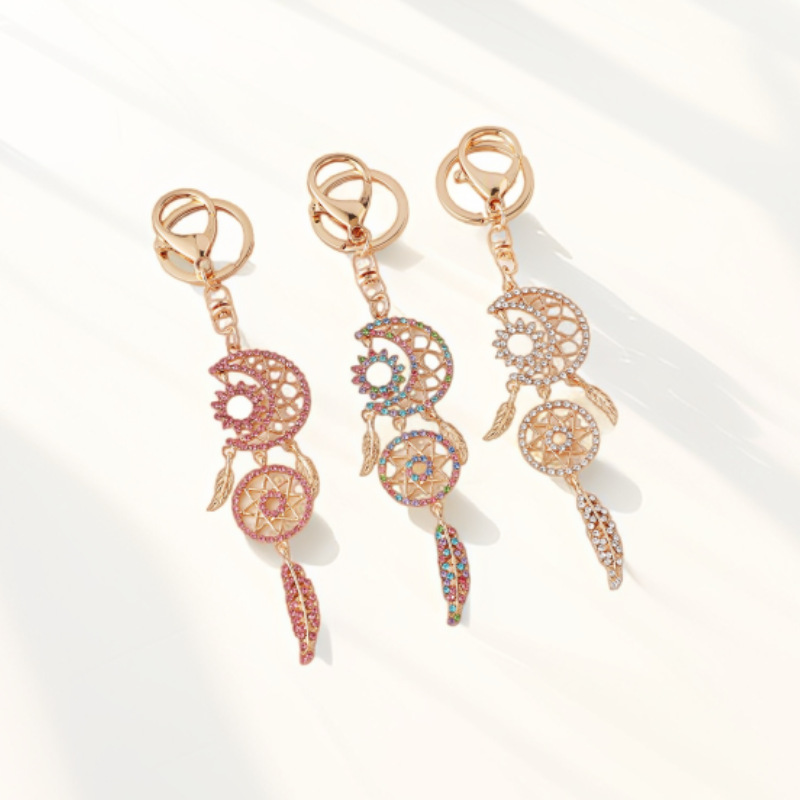 跨境镶钻星星月亮捕梦网汽车钥匙扣女流苏金属钥匙圈汽车包包挂件