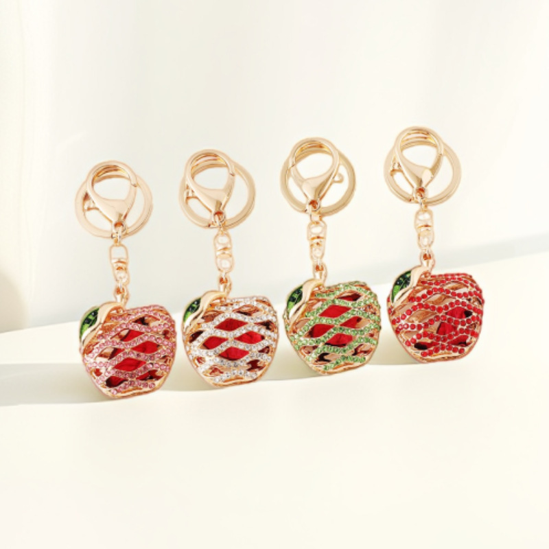 韩版创意时尚镂空苹果汽车钥匙扣合金水果吊坠钥匙圈汽车包包挂件
