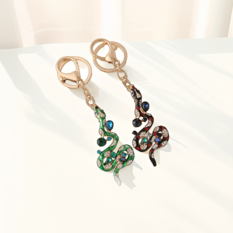 跨境创意个性生肖小蛇汽车钥匙扣合金镶钻动物钥匙圈汽车包包挂件