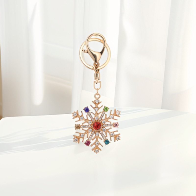 跨境创意圣诞节雪花汽车钥匙扣合金镶钻金属钥匙圈汽车包包挂饰品