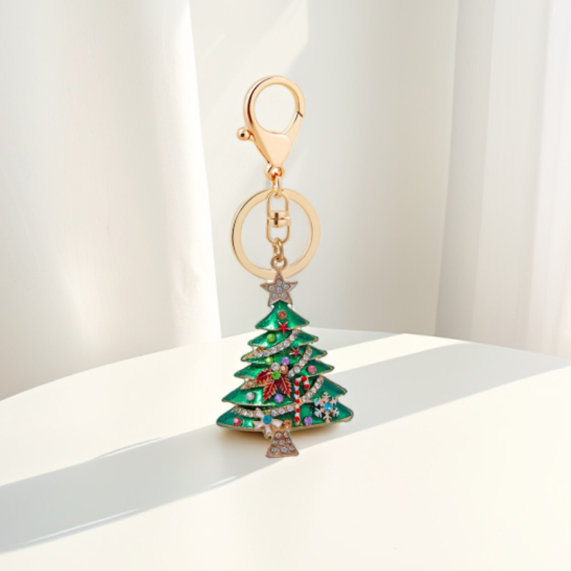 跨境创意镶钻圣诞树汽车钥匙扣合金花卉吊坠钥匙圈汽车包包挂饰品