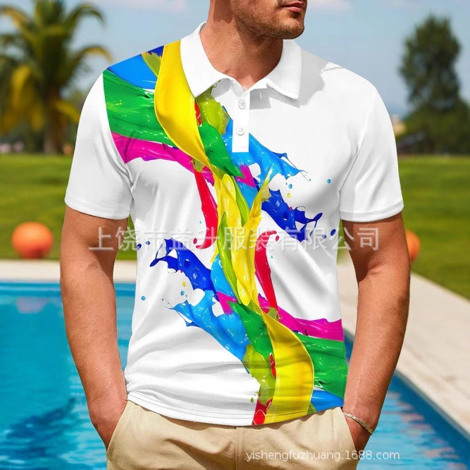 时尚舒适夏季男士休闲polo衫 数码印花图案欧美跨境休闲男士上衣