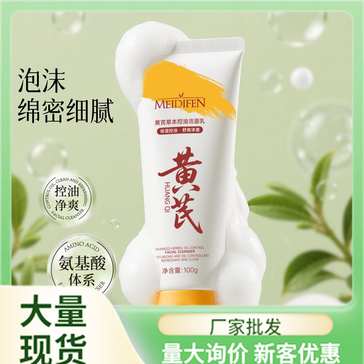 黄芪洗面奶保湿提亮深层洁毛孔控油氨基酸洁面乳老国货裸装批发