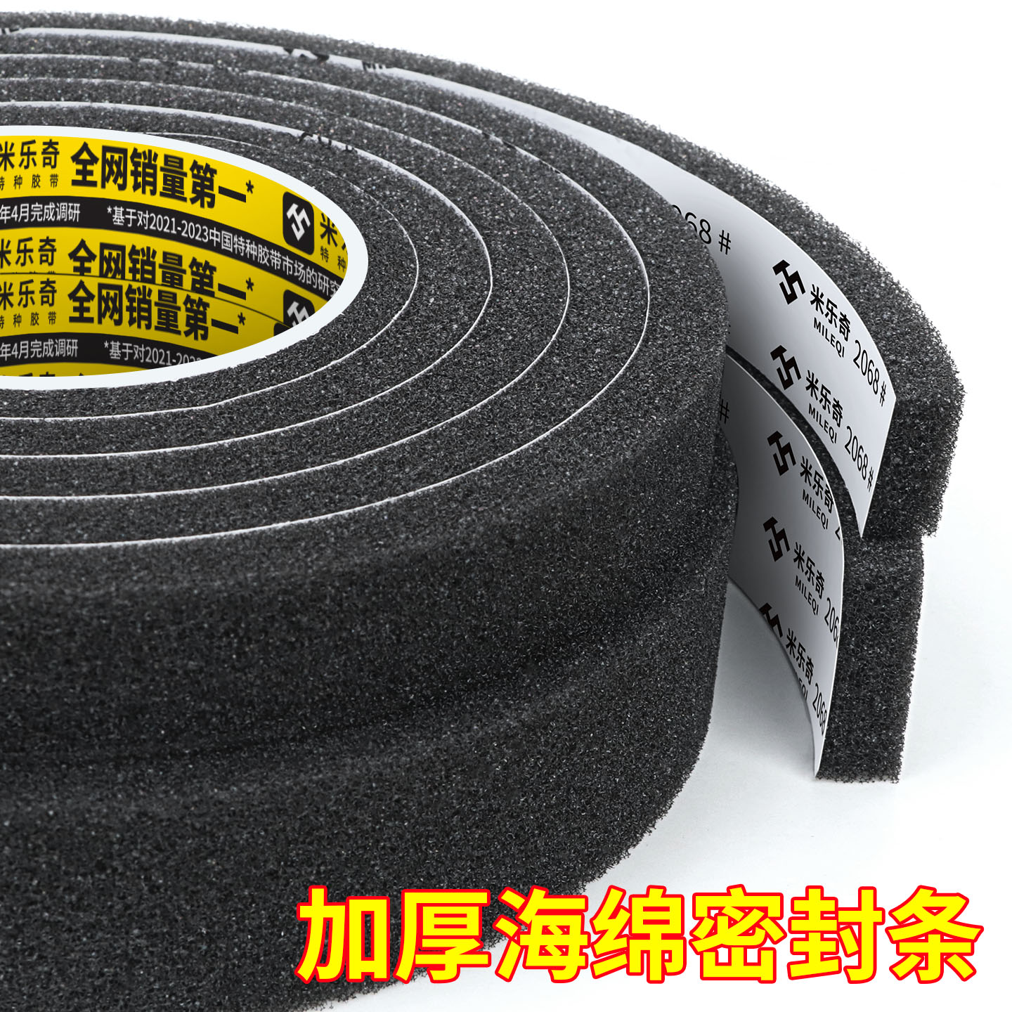 黑色柔软聚氨酯PU面背胶隔音自粘静音海绵胶带阻燃防火窗户密封条