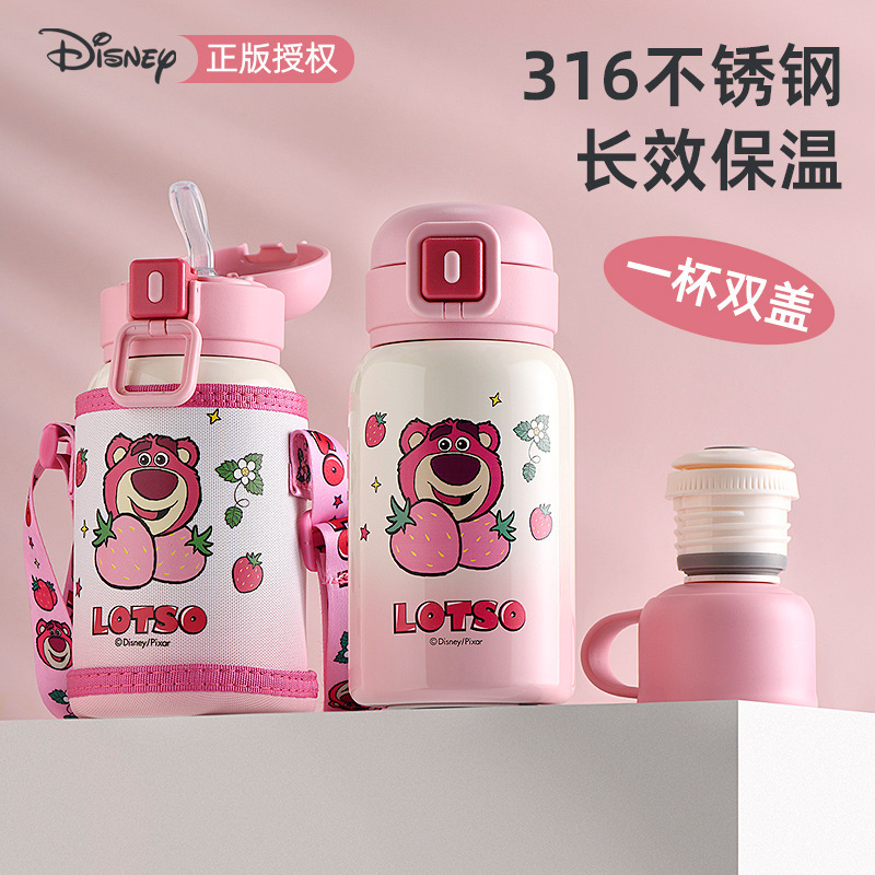 草莓熊新款保温杯公仔双盖杯316不锈钢儿童水壶幼儿园小朋友专用