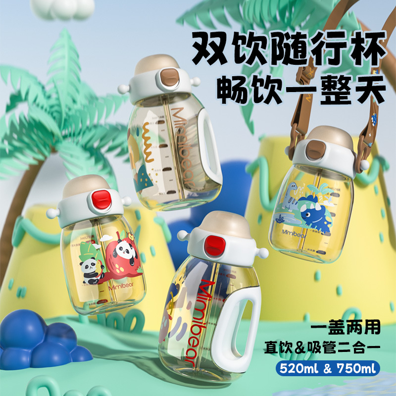 儿童PPSU双饮吸管杯耐高温便携幼儿园小学生水杯吸管直饮防摔刻度