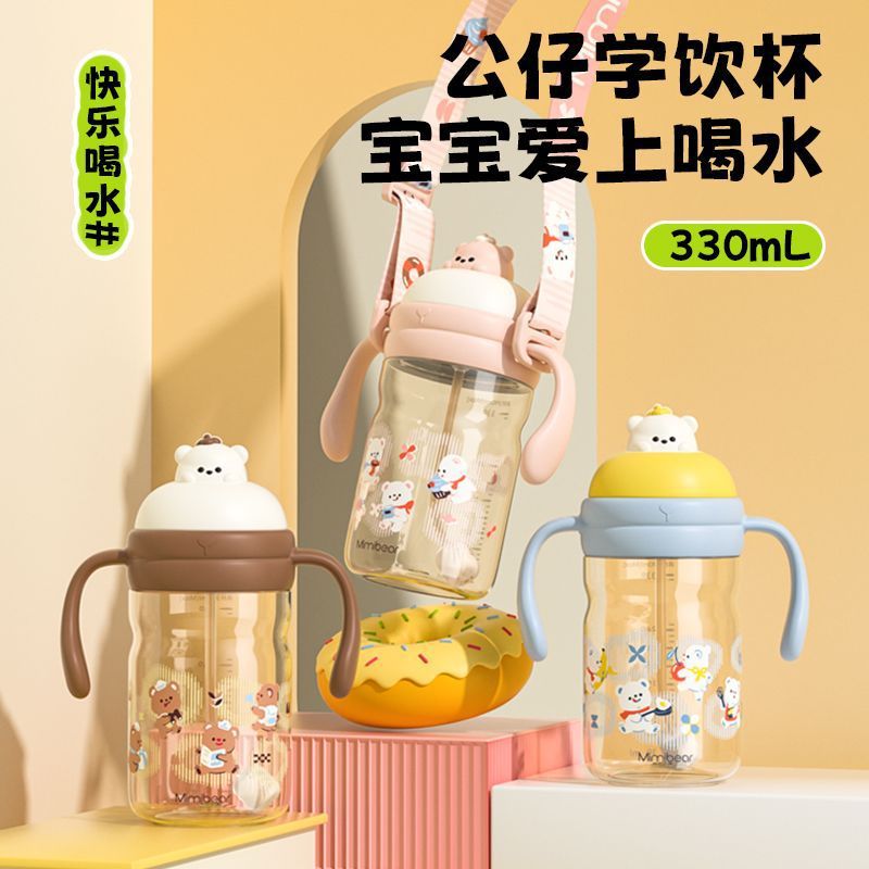 抗摔带刻度宝宝夏季学饮杯PPSU奶瓶材质安全手柄防摔防漏水送背带
