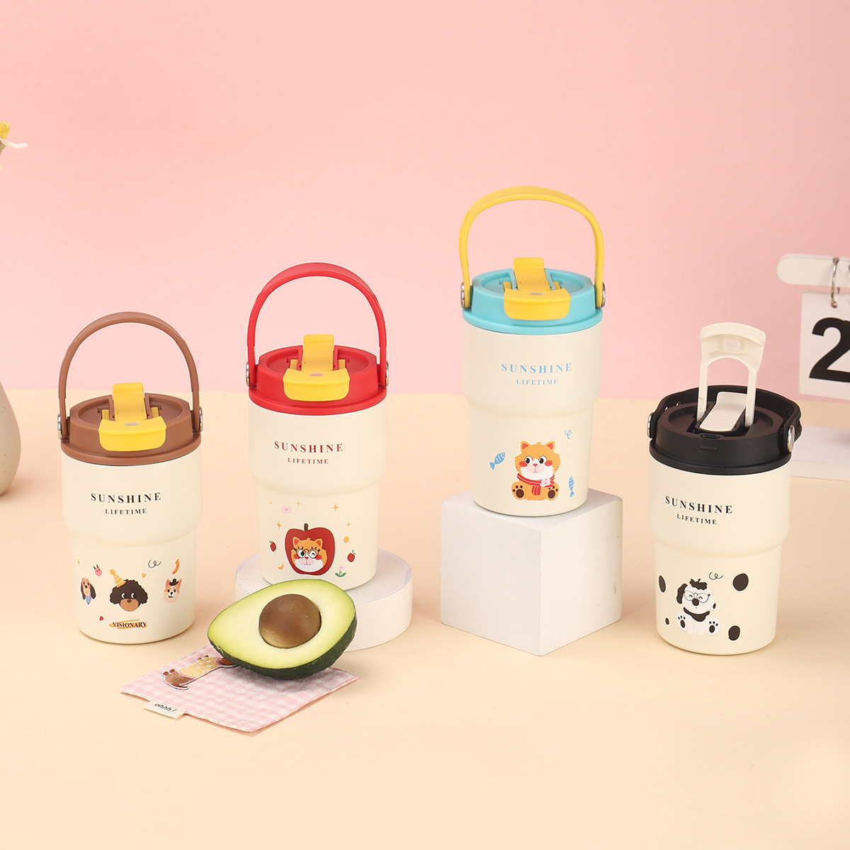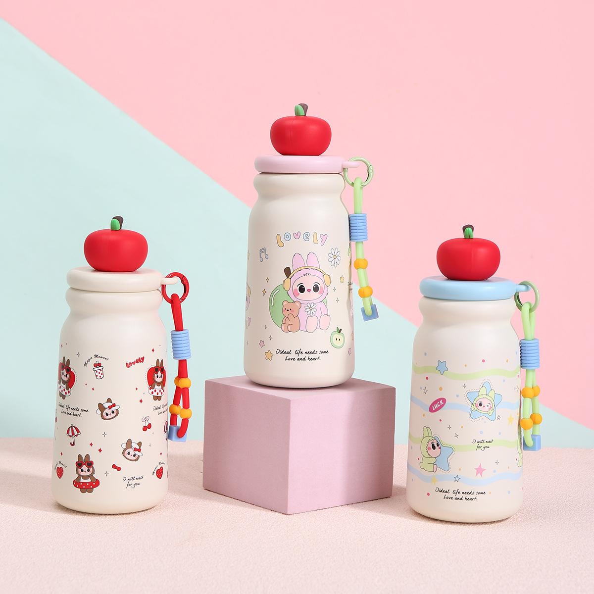 新款卡通316不锈钢保温杯便携可爱提绳女生水杯家用办公带茶漏吸