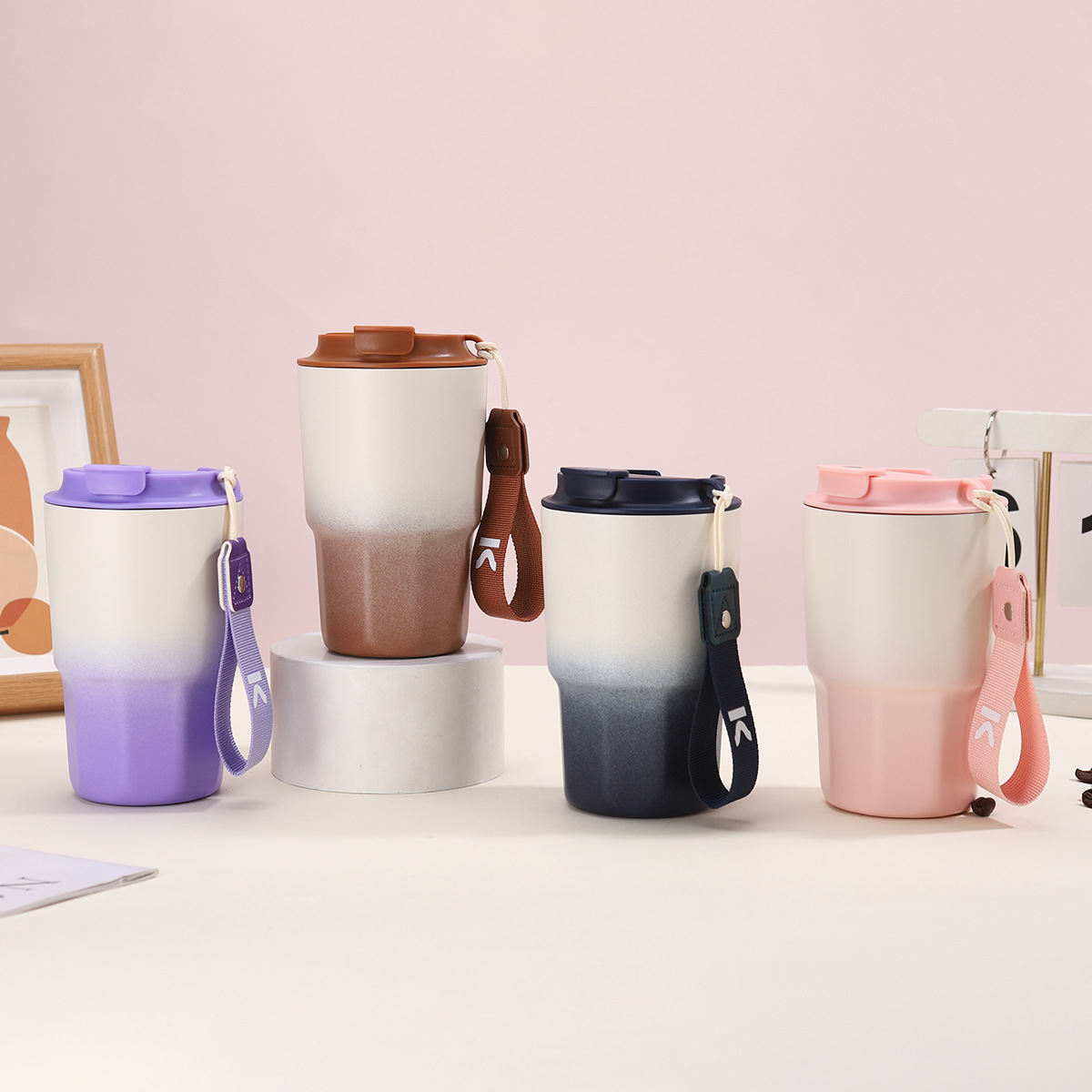 高颜值316不锈钢保温杯渐变色带提绳八角咖啡杯商务礼品杯批发