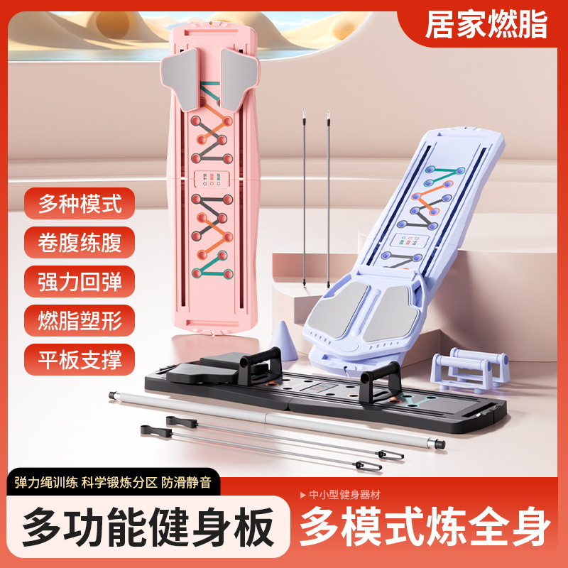 跨境多功能健身板可折叠便携式健腹轮带手机支架健腹板普拉提器材