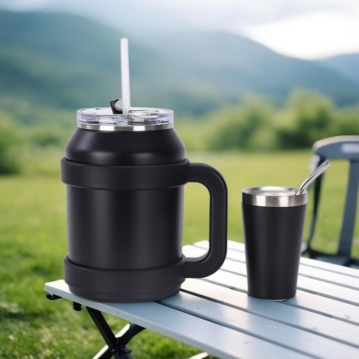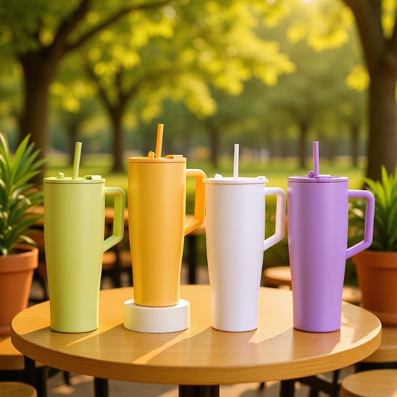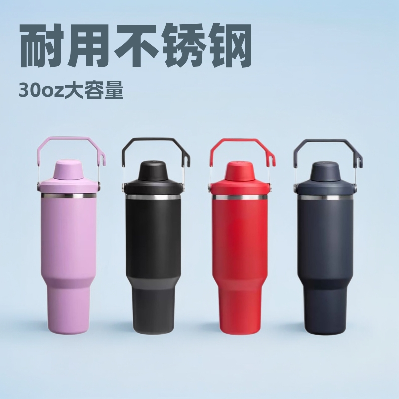 304不锈钢手柄吸管保温杯30oz水杯