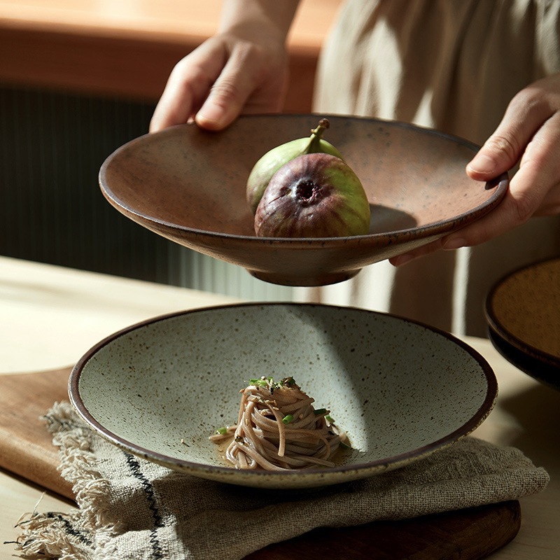粗陶斗笠面碗创意复古菜盘冷菜盘点心盘家用商用一件包邮代发