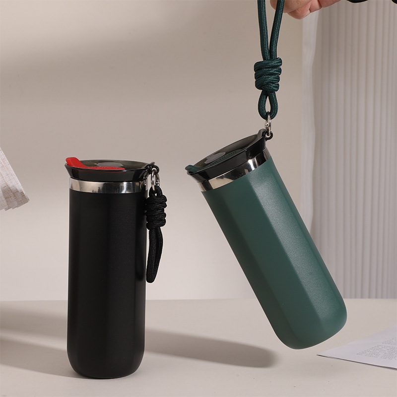 跨境新款304不锈钢八角咖啡杯时尚办公直饮杯户外便携提绳保温杯