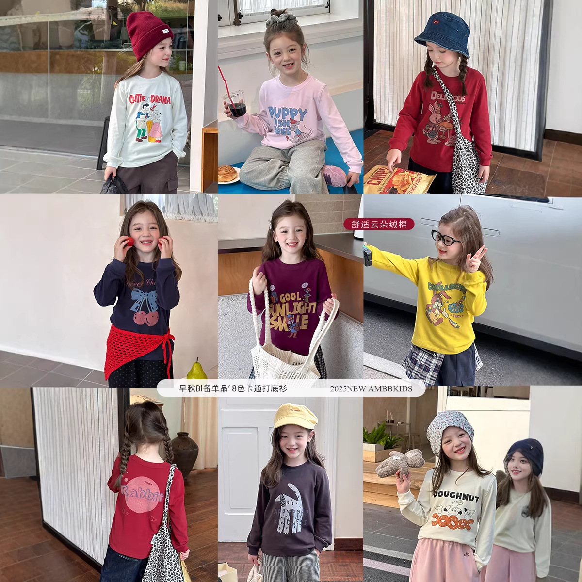春秋季童装男女童舒适软糯长袖T恤上衣儿童休闲可爱卡通打底衫