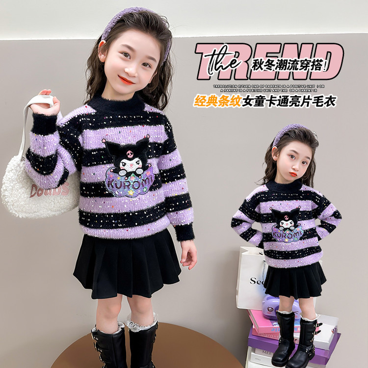 库洛米针织女童毛衣新款洋气宽松上衣可爱卡通织里女童秋冬打底衫