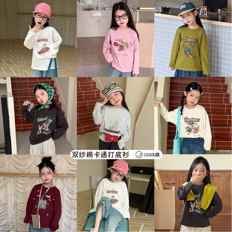 湖州织里童装童装儿童宝宝舒适云朵棉休闲韩版长袖T恤卡通打底衫