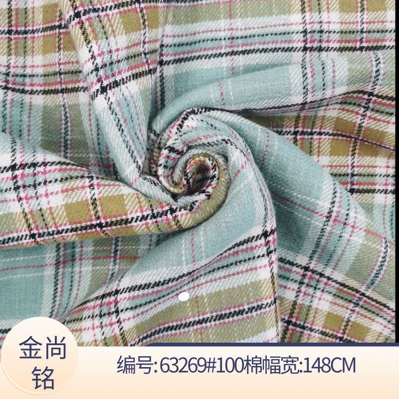 春秋新款全棉色织格子衬衫面料 纯棉格纹布料