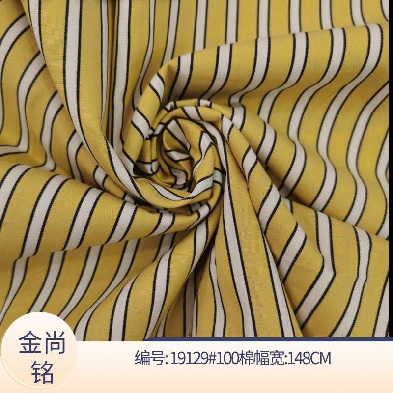 春夏新款全棉色织条子连衣裙面料 全棉黄色元素条纹
