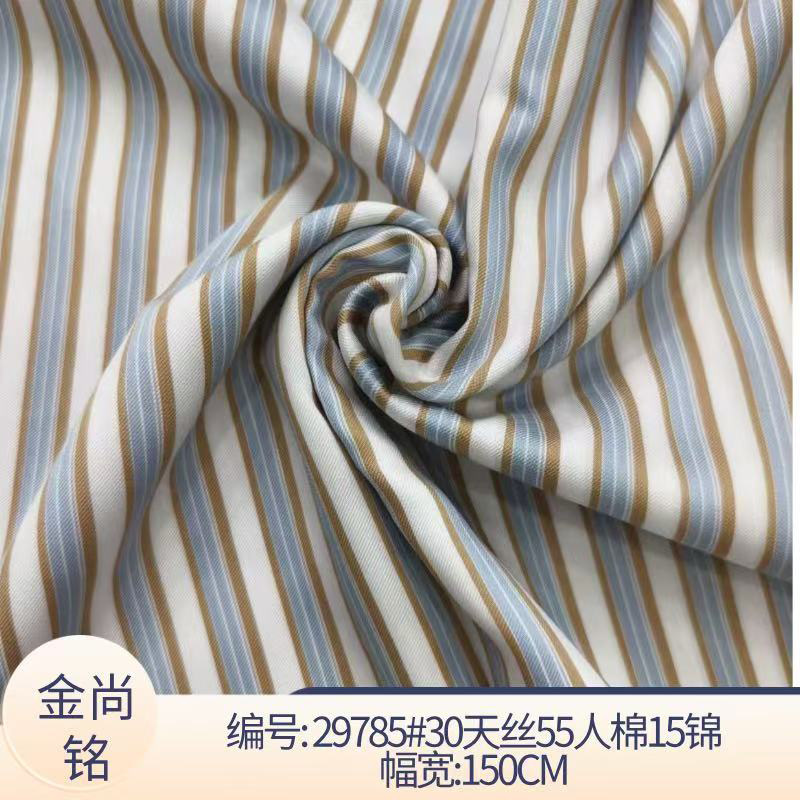 春夏新款天丝人棉锦混纺条 天丝斜纹色织条子面料