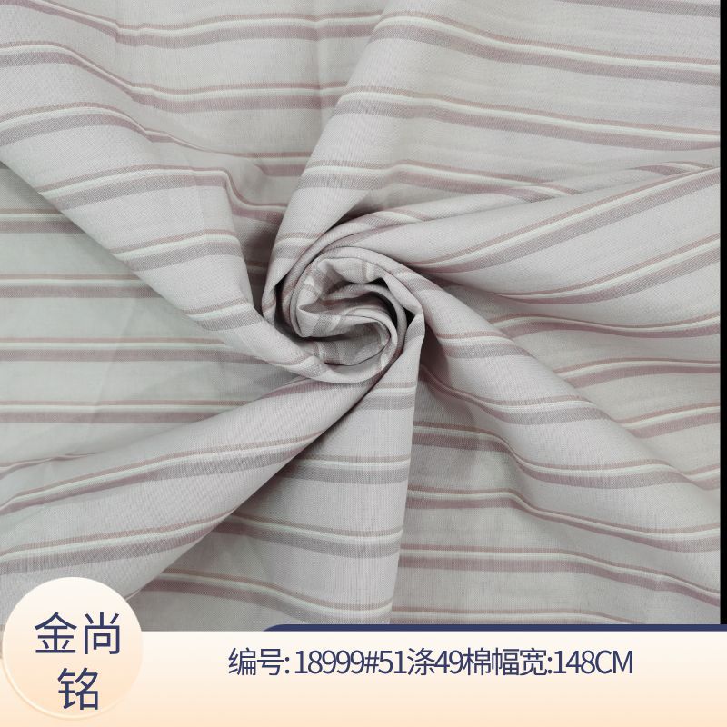 棉涤弹力混纺条纹衬衫面料 春夏新款条子布料现货