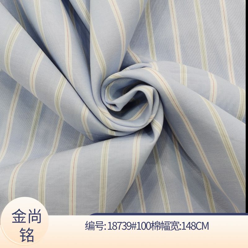 全棉色织条纹面料 高支高密条子连衣裙布料